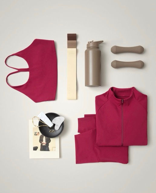 THE WELLNESS 系列 以 90 年代極簡風格 為基調,採用立體剪裁平衡實用與精緻。重點單品包括後側深 V 喇叭緊身褲、方領短版上衣、拉鍊外套、抓皺熱褲及細肩帶美背訓練套裝。全系列使用 SculptMove™ 布料,搶眼配色涵蓋 石榴紅、象牙白、柔沙色及墨黑色,營造層次視覺質感,由 Gym 到 Pilates Reformer 皆應付自如,無縫切換。