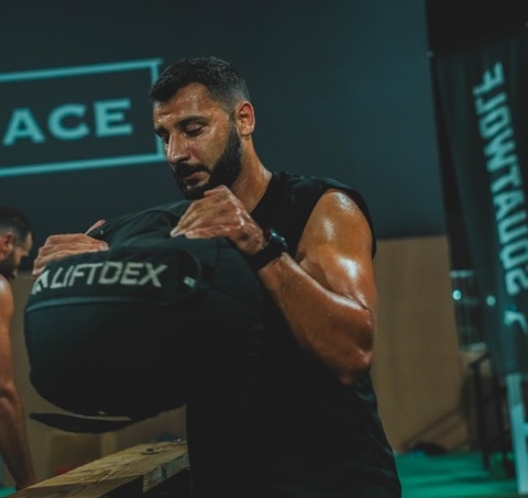 SANDBAG CARRY(沙袋搬運):負重耐力行軍,Tip:將沙袋抱緊胸前,碎急步前進。